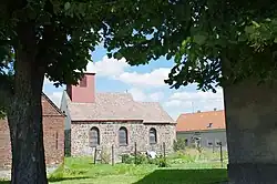 Die Dorfkirche wurde in der ersten Hälfte des 13. Jahrhunderts aus Feldsteinen erbaut. Es ist ein Saalbau mit eingezogenen Chor und eingezogener Apsis. Im Westen der Kirche befindet sich ein hölzerner Turm mit Zeltdach auf dem Dach der Kirche. Alle Öffnungen haben Rundbogen, auch die heute zugemauerten Portale an beiden Seiten und die Priesterpforte. In den Jahren 1891, 1892, 1928 und 1929 wurde die Kirche renoviert. Die Mensa wurde in der ersten Hälfte des 13. Jahrhunderts erstellt. Der Rest des Altars stammt aus dem Jahr 1892, ebenso wie die Taufe und die Kanzel.