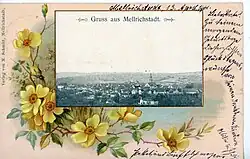 1232/33 erfolgte die Erhebung zur Stadt, die im Mittelalter Sitz einer bedeutenden Lateinschule war. Ab 1356 ist in Mellrichstadt ein mittelalterliches Leprosorium nachweisbar, das als Siechen- oder Leprosenhaus bezeichnet wurde.[8] Das ehemalige Oberamt Mellrichstadt des Hochstiftes Würzburg wurde nach der Säkularisation 1803 zugunsten Bayerns 1805 Erzherzog Ferdinand von Toskana zur Bildung des Großherzogtums Würzburg überlassen und fiel mit diesem 1814 endgültig an Bayern. Im Zuge der Verwaltungsreformen in Bayern entstand mit dem Gemeindeedikt von 1818 die heutige Gemeinde, die auch Sitz eines Landgerichts war.