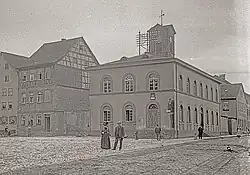 Mindestens seit dem 19. Jahrhundert waren jüdische Familien in der Stadt ansässig. 1869 wurde der Jüdische Friedhof des Ortes angelegt. Die an der Hauptstraße 60 errichtete Synagoge wurde am 30. September 1938, noch vor dem Novemberpogrom 1938, von einer Gruppe Sudetendeutscher schwer beschädigt und anschließend abgerissen. An dem an gleicher Stelle errichteten Geschäftshaus erinnert seit 1988 eine mit schwarzer Schrift auf schwarzem Hintergrund ausgeführte Gedenktafel[9], die an der von der Hauptverkehrsstraße kaum sichtbaren Seite des Gebäudes angebracht ist, an dieses Geschehen.