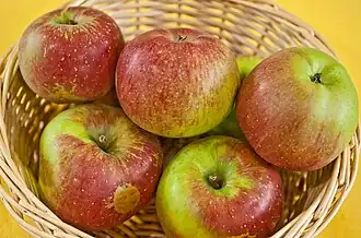 Die Früchte dieser Sorte werden mittelgroß. Die Schale ist glatt, hart und auf der Sonnenseite braunrot. Das Fruchtfleisch ist sehr fest und saftig und hat einen süßen und aromatischen Geschmack. Mitte Oktober ist der Apfel pflückreif, er ist bis März lagerfähig, kühl gelagert bis Mai. Der Apfel eignet sich für den Frischverzehr, gelegentlich verwendet man ihn für die Herstellung von Saft.[1]