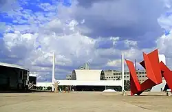 Bürgerplatz (Praça Civica) mit Lateinamerika-Parlament, davor die Hand, rechts die Tiradentes Veranstaltungshalle -