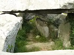 Die Nordost-Südwest orientierte, stärker gestörte Galerie ist etwa acht Meter lang. Sie hat 17 Tragsteine in situ, drei weitere fehlen. Vier Decksteine sind erhalten, drei liegen auf, einer liegt am Boden, die restlichen sind ausgegangen. Im Südteil wird eine zwei Meter lange Vorkammer mittels einer Platte abgetrennt. Im nördlichen Bereich liegt der seitliche Zugang in eine Kammerausbuchtung. Die Ausgrabungen haben gezeigt, dass der Boden, auf dem Objekte aus der Bronzezeit gefunden wurden, gepflastert war. Gefäße und Schmuck der Glockenbecherkultur belegen eine Nutzung in der Jungsteinzeit.