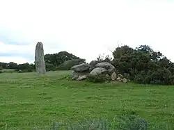 Etwa 500 m östlich steht der 3,8 m hohe, 2,4 m breite und 2,2 m dicke, massige Menhir von Bodquelen.