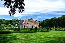 Es gibt einen großen Garten mit Teehaus. Die dort aufgestellten Statuen sind Kopien der Originale aus dem 18. Jahrhundert. Ferner findet sich hier auch eine Sonnenuhr aus dem Jahr 1722. Neben dem Lustgarten gibt es einen kleinen Irrgarten, wie es früher bei vielen Landhäusern üblich war. Daneben befindet sich ein Obstgarten mit zahlreichen alten Apfel- und Birnensorten und auch ein Küchengarten. Bei der Auswahl der Gemüse und Kräuter in diesem Garten hat man sich an dem Familienkochbuch aus dem 18. Jahrhundert orientiert.