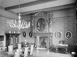 - Es handelt sich um einen repräsentativen Raum, der mit dem Kaminzimmer zusammen geplant war. Die Kamingemälde hier wurde von Hermannus Collenius geschaffen.