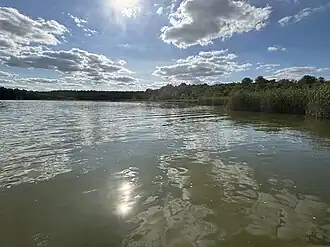 Das Westufer ist bewaldet, die Uferzonen sind größtenteils sumpfig.