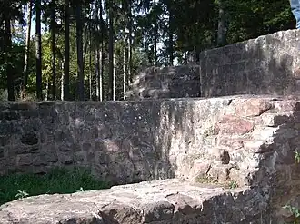 - ↑ a b Siehe Beschreibungstafeln am Fuß der Burg