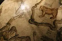 Der Globus zeigt 50 Sternkonstellationen. Darunter sind die 48, die in der Schrift Almagest des Ptolemäus auftauchen, sowie zwei von Mercator ergänzte, antike Sternbilder. Mercator orientierte sich außerdem an den von Ptolemäus eingeführten Sternhelligkeiten und wandte die sechsstufige Klassifizierung auch auf seinen Globus an. Vorbild für die Darstellung der Sterne bildet der ältere Erdglobus. Sie sind als hellrote Sterne mit fünf bzw. sechs Zacken vermerkt. Neben den Sternbildern wurde auch die Milchstraße verzeichnet.[3]