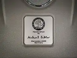 Die AMG-Motoren werden in Handarbeit überwiegend in der Motoren-Manufaktur in Affalterbach zusammengebaut – jeder Motor von einem einzelnen Mechaniker nach dem Prinzip „ein Mann – ein Motor“.[22] Im letzten Arbeitsschritt wird die Plakette mit der Unterschrift des Mechanikers angebracht. Die Motoren werden an die jeweiligen Mercedes-Benz-Werke wie Sindelfingen oder Bremen geliefert und dort in die AMG-Fahrzeuge eingebaut.