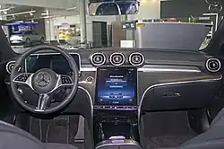 Die Gestaltung des Innenraums ist von der S-Klasse (BR 223) abgeleitet. So erhält die C-Klasse auch ein Zentraldisplay, das als 9-Zoll- und als 11,9-Zoll-Variante eingebaut wird. Es ist ein Touchscreen, jedoch mit zusätzlichen Schaltern für einige Funktionen. Das Infotainment verwendet MBUX der zweiten Generation.[3][10]