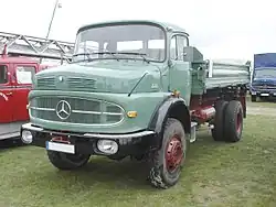 Von 1963 an liefen die Fahrzeuge mit neuen Typenbezeichnungen vom Band. Anstatt der bisher verwendeten wenig aussagenden Baumuster wählte man eine Ziffernfolge, die sich an Gesamtgewicht und Motorleistung der jeweiligen Ausführung orientierte. So hieß zum Beispiel der schwere L 334 fortan L 1620[1]. Im selben Jahr wurde auf der Frankfurter IAA das erste Mal nach dem Krieg wieder ein Dreiachser, der speziell für Baustellen- und Kurzstreckenverkehre gedacht war, von Daimler-Benz präsentiert[2].