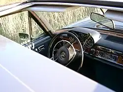 Bei den Automatik-Versionen änderte sich 1968 die Bedienung des Wählhebels: die Parkstellung P war zunächst hinten, 1968 kam sie, wie heute allgemein üblich, nach vorn. Dies war die Folge des Einsatzes der neueren Getriebebaureihen. Der Lenkrad-Wählhebel der Automatik als Sonderausstattung wurde nur noch selten gewählt, weil er als veraltet empfunden wurde. Jedoch waren Lenkradschalthebel die Voraussetzung, vorn mit drei Personen bzw. zwei Beifahrern fahren zu dürfen. Hierzu wird ein kleines Sitzkissen in die Ablageschale zwischen den Sitzen gelegt und die Mittelarmlehne mit gepolsterter Unterseite hochgeklappt, sodass auf dem provisorisch verbreiterten Beifahrersitz zwei Personen Platz nehmen können. Jedoch verschwand diese Art der Sitzbank-Nutzung in den 1970er Jahren allmählich. Das Anschnallen zweier Beifahrer war nicht möglich; ohne Sicherheitsgurt zu fahren vertrug sich nicht mit dem Gedanken bestmöglicher Sicherheit, den Daimler-Benz stets propagierte. Versionen mit Lenkradschalthebeln und Sitzkissen dürfen bis heute mit drei Personen vorn gefahren werden.