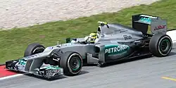 Der Mercedes F1 W03 war der Formel-1-Rennwagen des Mercedes-Werksteams für die Formel-1-Weltmeisterschaft 2012. Er ist der vierte Mercedes-Formel-1-Wagen insgesamt und der dritte seit dem Wiedereinstieg. Der Rennwagen wurde am 21. Februar 2012 auf dem Circuit de Barcelona-Catalunya der Öffentlichkeit vorgestellt, nachdem die ersten Testtage der Saison noch mit dem Vorgänger W02 bestritten worden waren.[1] Die Bezeichnung F1 W03 steht für Mercedes F1 und das bei Mercedes-Benz traditionell nummerierte W für Wagen.