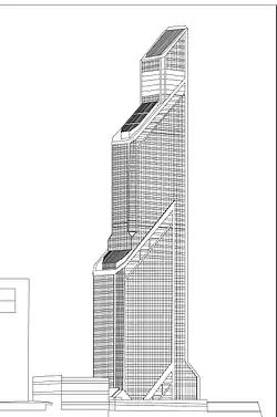 Ursprünglich sollte der Turm eine Gesamthöhe von 380 Metern erreichen, im Sommer 2011 jedoch musste die Höhe aufgrund einer neuen Bauvorschrift der Stadt Moskau verkleinert werden, da diese Vorschrift nur eine Höhe von maximal 340 Metern in diesem Gebiet vorsieht. Daher wurde die Stahlspitze, die auf dem Dach in einer Höhe von 332 Metern folgen sollte, nicht länger in den Bauplanungen berücksichtigt. Am restlichen Design des Turms wurde allerdings nichts verändert, so dass auch die Bauarbeiten keinen Einschränkungen unterworfen waren.[1]