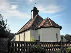 - Evangelische Dorfkirche Mertendorf aus dem 17. Jahrhundert mit der Marienglocke aus dem 15. Jahrhundert