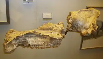 Fossiler Schädel von Merycopotamus petrocchii im Naturhistorischen Museum von Florenz. | ||||||||||||