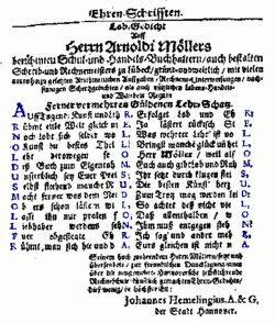 Ein weiteres Beispiel für ein Mesostichon stammt aus der Barockzeit: Johannes Hemelingius baute in einem Lobgedicht auf Arnoldus Möller den Namen des Adressaten sowohl als Akro- als auch als Meso- als auch als Telestichon ein.