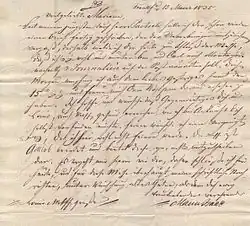 Brief zum Ende der Frankfurter Messe, Datum 13. März 1835