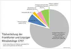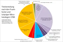 - ↑ Data again retrieved from Edward Arber’s edition vol. 3, Catalogue for Easter 1711. See for the following table and a brief discussion of the data with a look at the German Messkataloge for 1711: Olaf Simons: Marteaus Europa oder Der Roman, bevor er Literatur wurde. Rodopi, Amsterdam / Atlanta 2001, S. 36–50, 61-65.