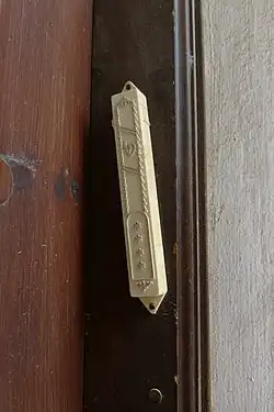 Manche gläubige Juden küssen die Mesusa beim Betreten eines Raumes, indem sie die Fingerspitzen der rechten Hand an die Mesusa und dann zum Mund führen.