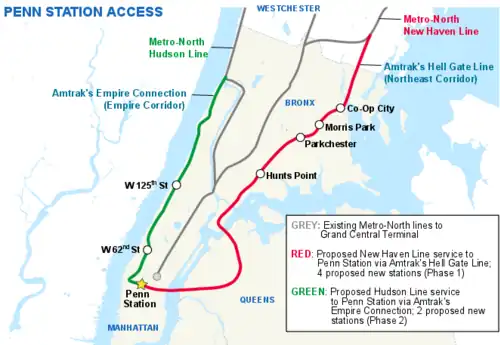 Im Rahmen des Projekts Penn Station Access baut MTA Construction & Development[3]:6 in den 2020er Jahren eine bestehende Bahnstrecke auf rund 5 km Länge zu einer Verbindung durch die östliche Bronx über den Hell-Gate-Brückenzug nach Midtown Manhattan aus.[21]