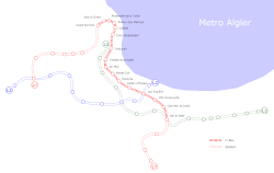 Die Metro Algier (arabisch مترو الجزائر العاصمة, DMG mitru aljazayir aleasima, französisch Métro d'Alger) ist ein im Aufbau befindliches U-Bahn-System in der algerischen Hauptstadt. Die Arbeiten begannen im Jahre 1981, die Eröffnung des ersten Abschnittes erfolgte am 31. Oktober 2011.[1] Aktuell bedient eine Linie insgesamt 19 Haltestellen auf knapp 19 Streckenkilometern und erreicht damit täglich im Mittel rund 200.000 Fahrgäste.