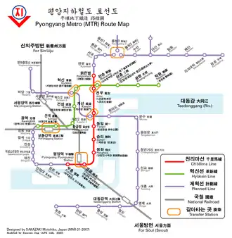 - ↑ nknews: North Korea extending Pyongyang metro system, sources say | NK News. In: NK News - North Korea News. 25. April 2018, abgerufen am 11. Dezember 2019 (amerikanisches Englisch).