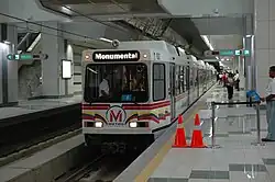 | Zug des Typs Siemens SD-460 vor dem Betriebshof in Parroquia Santa Rosa (2006) | |