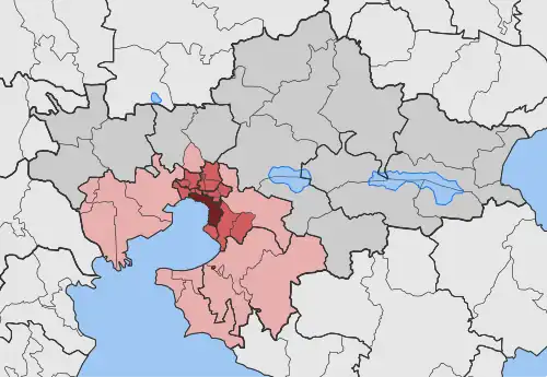 Traditionell wurde die Metropolregion Thessaloniki lediglich als Gebiet der Stadt Thessaloniki und der unmittelbar angrenzenden 12 Stadt- und Landgemeinden aufgefasst.