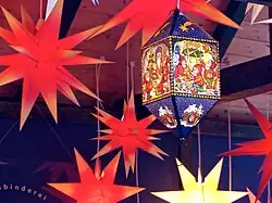Die Mettenlaterne (regional auch Christ- oder Weihnachtslaterne) ist eine besonders gestaltete Laterne, die als Mettenlicht, heute oft von Kindern, in die Christvesper, Christ- oder Finstermette getragen wird.[1] Der Brauch ist im Erzgebirge, Vogtland und auch in einigen Teilen Thüringens verbreitet. Besonders im Erzgebirge werden die Mettenlaternen während der Christvesper oder Christmette um den Altar oder vor die Kirchentür gestellt.