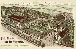 1928 wurde die Straßenbahn von Probstheida über Meusdorf bis Liebertwolkwitz verlängert, so dass die Leipziger ihr Naherholungsziel leichter erreichen konnten. Der Ort wurde aber auch zu politischen Kundgebungen genutzt. So sprach zum Beispiel Adolf Hitler am 4. März 1932 im Park Meusdorf.[4] Während des Zweiten Weltkriegs dienten die Bauten als Strafgefangenenlager und nach dem Krieg als Wohnraum für Flüchtlinge und Vertriebene. Nach und nach wurden ab 1952 die Gebäude bis auf die Gaststätte abgerissen, in der Anfang der 1950er Jahre ein Altersheim eingerichtet wurde. Gegenwärtig (Stand: 2023) ist das Gebäude in das Gelände der Christlichen Sozialwerk gGmbH Werkstatt für behinderte Menschen Sankt Michael integriert.