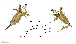 Die stacheligen, eiförmigen bis länglichen Rahmenkapseln enthalten viele Samen. Sie schwärzlichen Samen sind bei einem Durchmesser von 1 bis 2 Millimetern rundlich und strukturiert sowie kurz bespitzt.
