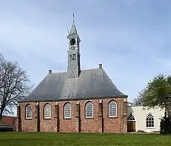 Das heutige Kirchengebäude wurde unter teilweiser Verwendung älteren Mauerwerks Mitte des 17. Jahrhunderts als einschiffige Saalkirche mit Strebepfeilern und Dachreiter in nachgotischem Stil errichtet, der sich an den Dorfkirchen der Backsteingotik der Region anlehnt. 1836 wurde die weiß verputzte Sakristei im Stil der Neugotik angefügt. Im damals ebenfalls renovierten Dachreiter befinden sich Glocken, die 1570 von Pieter van den Ghein und 1755 von Michaël Everard gegossen wurden. Zwischen 1962 und 1964 wurde die Kirche von dem ebenfalls 1836 aufgebrachten Putz befreit und restauriert. Die Ausstattung umfasst eine Kanzel im Louis XVI-Stil vom Ende des 18. Jahrhunderts sowie eine um 1750 für eine Kirche in Maastricht gebaute Orgel, vermutlich von den Orgelbauern Thomas und Peter Weidtman geschaffen. 1778 gelangte diese Orgel in die Reformierte Kirche in Neerijnen, danach wurde sie 1866 durch die Kirchengemeinde in Koudekerke gekauft und 1953 durch Orgelbau Van Vulpen grundlegend restauriert. Auf dem umgebenden Friedhof, der von einer Mauer mit zwei Eingangstoren umgeben ist, befinden sich einige Grabsteine englischer Soldaten, die 1810 gefallen sind.