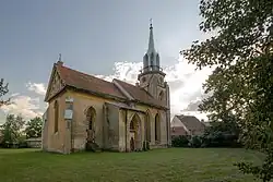 - Die Römisch-katholische Kirche mit dem Patronat der hl. Hedwig war zunächst eine Kapelle, die 1820–1833 zu einer Saalkirche vergrößert wurde. Es ist ein Langhaus mit dreiseitigem Chor, Vorhalle und Sakristei. Der Dachreiter stammt aus dem 19. Jahrhundert; der neubarocke Kirchturm mit Helm und die Apsis kamen 1910–1912 hinzu.