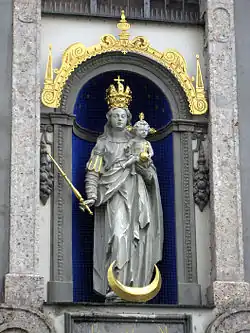 - Statue der Madonna mit Kind an der Fassade der Pfarrkirche Schwaz, um 1650