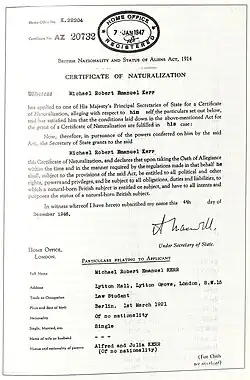 - Kerr, Sir Michael R. E., in: Werner Röder, Herbert A. Strauss (Hrsg.): Biographisches Handbuch der deutschsprachigen Emigration nach 1933. Band 1: Politik, Wirtschaft, Öffentliches Leben. München: Saur 1980, S. 362