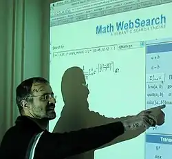 Ein großer Teil seiner konkreten Arbeit basiert auf Web-Content-Markupsprachen wie MathML, OpenMath, OMDoc und Systemen zur Verwaltung solcher Daten, z. B. Formelsuchmaschinen,[2] semantische Erweiterungen zu LaTeX.[3] oder die Konvertierung alter LaTeX-Dokumente aus dem arXiv.[4]