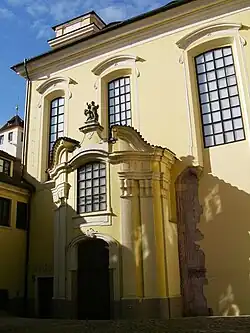- Servitenkloster (Klášter servitů), Michalská 20, 27 und 29, UNESCO-Weltkulturerbe. Zentrum des Klosterkomplexes ist die ehemals romanische Pfarrkirche Michael. Der Komplex besteht aus sechs weiteren Gebäuden, von denen sich ein Teil am Altstädter Ring gegenüber dem Rathaus befindet.[14]
