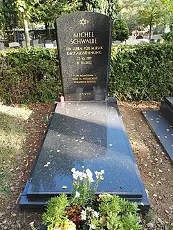 Michel Schwalbé, der bis zu seinem Lebensende mit den Berliner Philharmonikern verbunden blieb,[9] starb wenige Wochen vor seinem 93. Geburtstag. Er wurde am 15. Oktober 2012 auf dem Jüdischen Friedhof an der Heerstraße beigesetzt.[10]