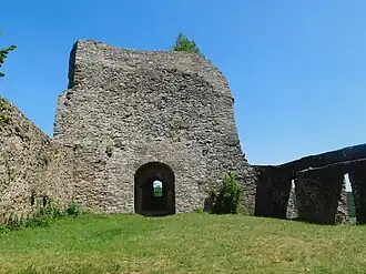Von der ehemaligen Burganlage sind noch Reste der Vorwerksanlage mit Turm, Teile des vorgelagerten Halsgrabens, ein mit Sandsteinen gemauerter Brunnen mit 8 m Tiefe und 2,20 m im Durchmesser erhalten sowie Teile eines Torbogens. Besonders auffällig sind die noch ca. 20 m hoch aufragenden Reste einer am Fuß bis zu 4 m dicken imposanten Schildmauer.