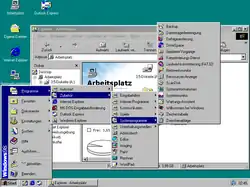 Microsoft Windows 95 galt als revolutionär, als es 1995 erschien. In dem 16-/32-Bit-System erfüllt MS-DOS 7.0 (ähnlich wie zuvor bei Windows 3.x PC-kompatibles DOS) die Funktion eines Bootstrappers, ist nun aber Bestandteil von Windows. Auch erlaubt es dank VFAT lange Dateinamen, die länger sind als die unter DOS bis dahin zulässigen acht Zeichen. Innerhalb von vier Tagen wurden die ersten Millionen Exemplare verkauft. In den beiden Folgejahren erschienen Windows 95b und Windows 95c, die USB und FAT32 zur Adressierung von Festplatten von über 2 Gigabyte unterstützen.[11]
