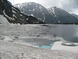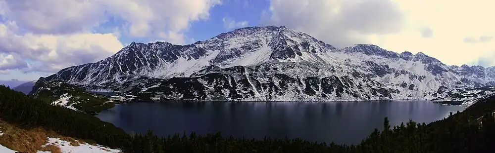| Massiv über dem Bergsee Meerauge | ||