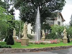 Die Dr.-Schmincke-Allee wurde 1876 von den ortsansässigen Baumeistern Gebrüder Ziller erschlossen und als Albertstraße der Öffentlichkeit zur Verfügung gestellt, benannt nach dem seinerzeitigen sächsischen König Albert. Ab 1904 hieß sie Kaiser Friedrich-Allee. Das Rondell in der Dr.-Schmincke-Allee (Fontainenplatz) entstand auf eigene Kosten der Gebrüder Ziller als ovaler Platz, um den herum vier Villen errichtet wurden. Auf dem Rondell entstand in einer Grünfläche ein Brunnenbecken mit der namensgebenden „Fontaine“, die nach über 50 Jahren Untätigkeit im Jahr 2008 durch den ortsansässigen verein für denkmalpflege und neues bauen radebeul wieder ausgegraben und in Betrieb gesetzt werden konnte. Die Stadt Radebeul lässt diese Fontäne in Zukunft wieder sprudeln. Die Gebrüder Ziller stellten um das Brunnenbecken vier Figuren der Firma Ernst March, Charlottenburg auf, die die Vier Jahreszeiten darstellen und deren Entwürfe von Julius Franz stammen. Diese 1880 als Katalogware beschafften, lebensgroßen Figuren stehen auf Postamenten und blicken in Richtung Brunnen.