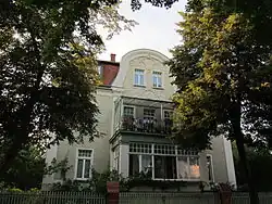 Die zusammen mit ihrer Einfriedung und der Pforte unter Denkmalschutz stehende Mietvilla[1] ist ein Wohnhaus mit neobarocken Anklängen. Auf dem zweigeschossigen Wohnhaus sitzt ein hohes, stark ausgebautes Ziegel-Mansarddach.