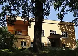 Die in den Jahren 1928 bis 1930 errichtete zweigeschossige Villa „ist der Neuen Sachlichkeit verpflichtet … [und zeigt] das Vokabular der Moderne.“[1] Elemente der Moderne sind die „strenge und schmucklose“ Gestaltung des Baukörpers und der überdachte, stützenlose Eckbalkon, der sich auf der linken Seite der Fassade mit Eingang befindet. Ebenso ohne Stützen kommt die weit vorgezogene Überdachung des Eingangs aus. Das Vestibül hat eine „dezente und wertvolle“[1] Ausstattung.
