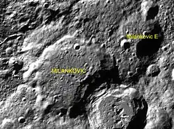 - ↑ D. H. Menzel, M. Minnaert, B. Levin, A. Dollfus, B. Bell: Report on Lunar Nomenclature by The Working Group of Commission 17 of the IAU. In: Space Science Reviews. Band 12, Nr. 2, 1970, S. 136–186, Milankovic auf Seite 161, bibcode:1971SSRv...12..136M (englisch).