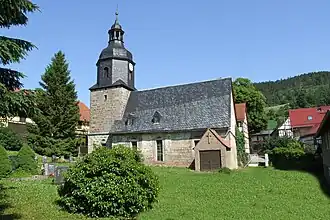Der Ort verfügt über schöne Fachwerkgebäude von alten Bauernhöfen. Wegen seiner klimatisch günstigen Hochtallage wurde hier bis in das 18. Jahrhundert Wein angebaut.[5] Die evangelisch-lutherische Dorfkirche steht unter Denkmalschutz.
