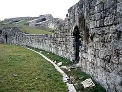 Im 5. Jahrhundert wurde das Amphitheater umgenutzt und zur Festung ausgebaut, weil es strategisch gut an einer Hauptverkehrsstraße gelegen war. Die Tribünenaufgänge wurden dafür zugemauert.[4] Die Völker, die sich in den folgenden Jahrhunderten in Ungarn niederließen bzw. dort durchzogen (Heruler, Langobarden, Awaren), nutzten diese Festung auch. Aus dem 6. Jahrhundert stammt ein Silberschatz, der von Herulern oder Langobarden dort vergraben wurde. Im 7. und 8. Jahrhundert legten awarische Anwohner der Gegend nördlich des Amphitheaters Gräber an.[5] Im 9. Jahrhundert erfolgte die Landnahme der Ungarn, die von zwei Königen angeführt wurden, einem Militärkönig (Gyula) und einem Sakralkönig (Kende). Der magyarische Sakralkönig Kursan († 904) wählte als Residenz den Bereich des früheren Aquincum, und zwar eine Anlage, die in den mittelalterlichen Quellen als „Kursans Burg“ bezeichnet wird. Es spricht einiges dafür, dass damit das alte Militäramphitheater gemeint ist.[6]