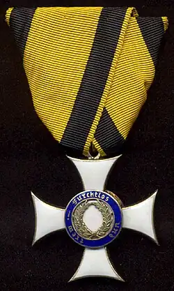 Er wurde für Verdienste im Krieg oder in Friedenszeiten für mindestens 25-jährige treue Dienste verliehen und musste ständig getragen werden.