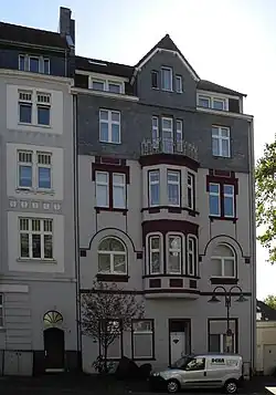 Das Gebäude ist ein viergeschossiges Wohnhaus nahe der Einmündung der Lindenstraße in die Milsper Straße. Das Gebäude besitzt einen verschieferten, abgewalmten Mittelgiebel mit Holzortgang und kleiner Fenstergruppe. Mittig angeordnet ist ein abgeschrägter Erker.